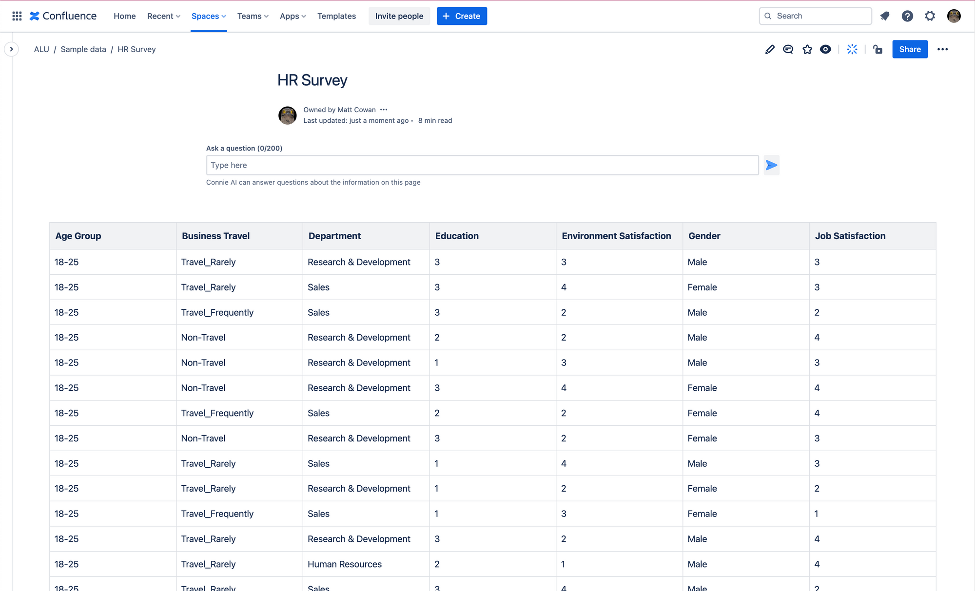 The other place we think that the new page macro shines is for data-heavy pages, especially with tables. Take this HR survey page for example: