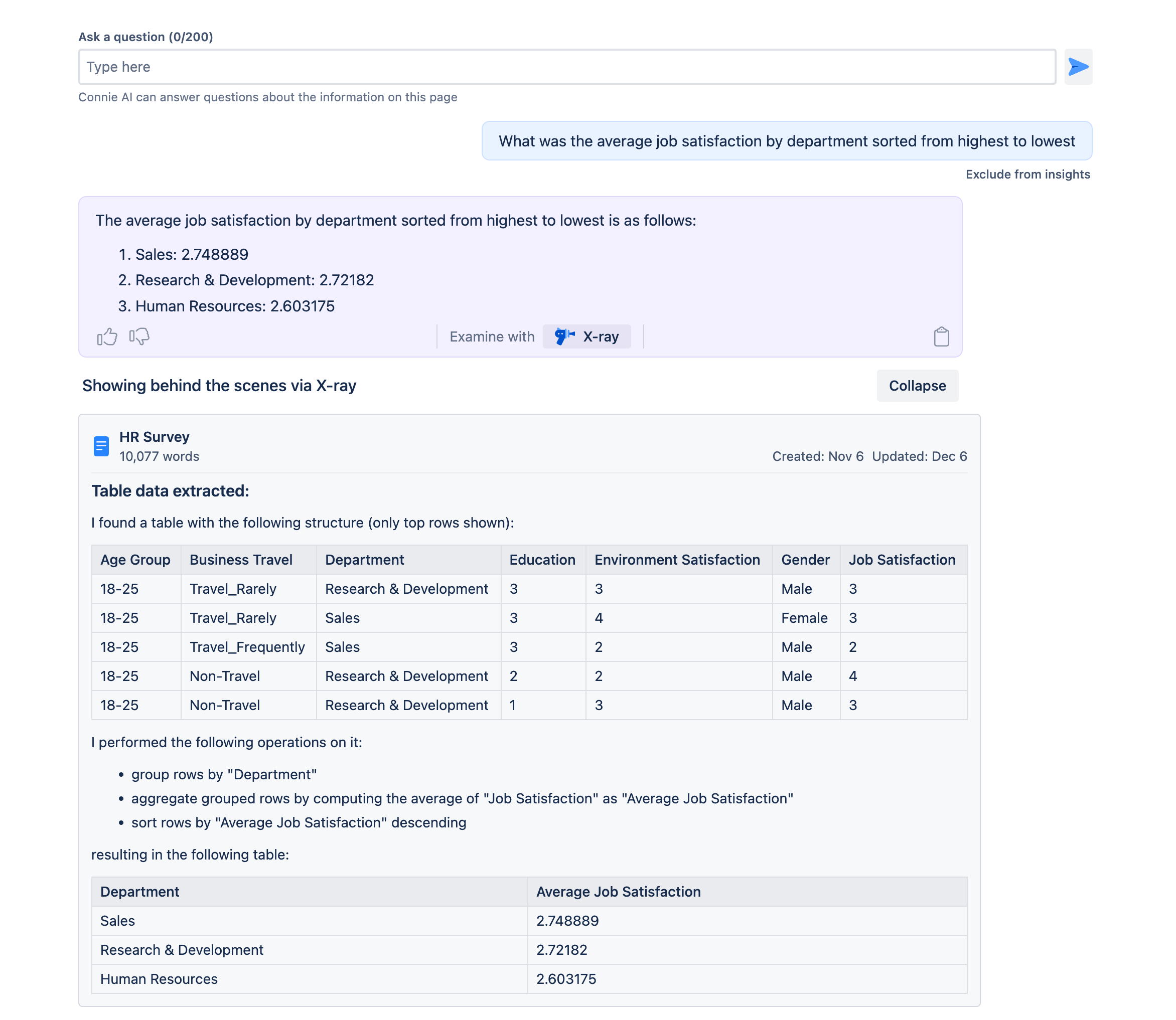 Having Connie AI live directly inline with your tables allows your teammates to ask questions of the tables, and skip copy-pasting the table into Excel or Google Sheets.