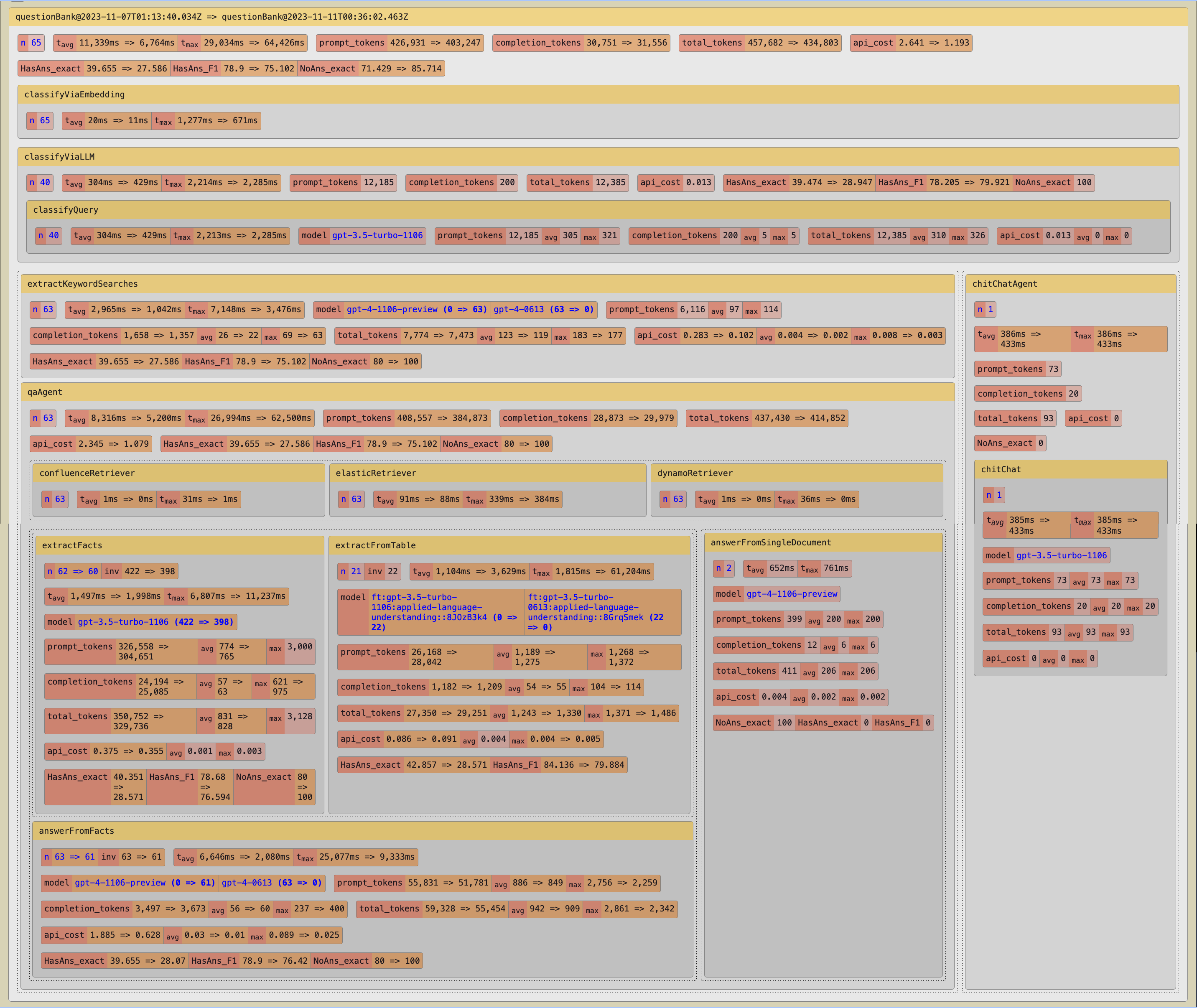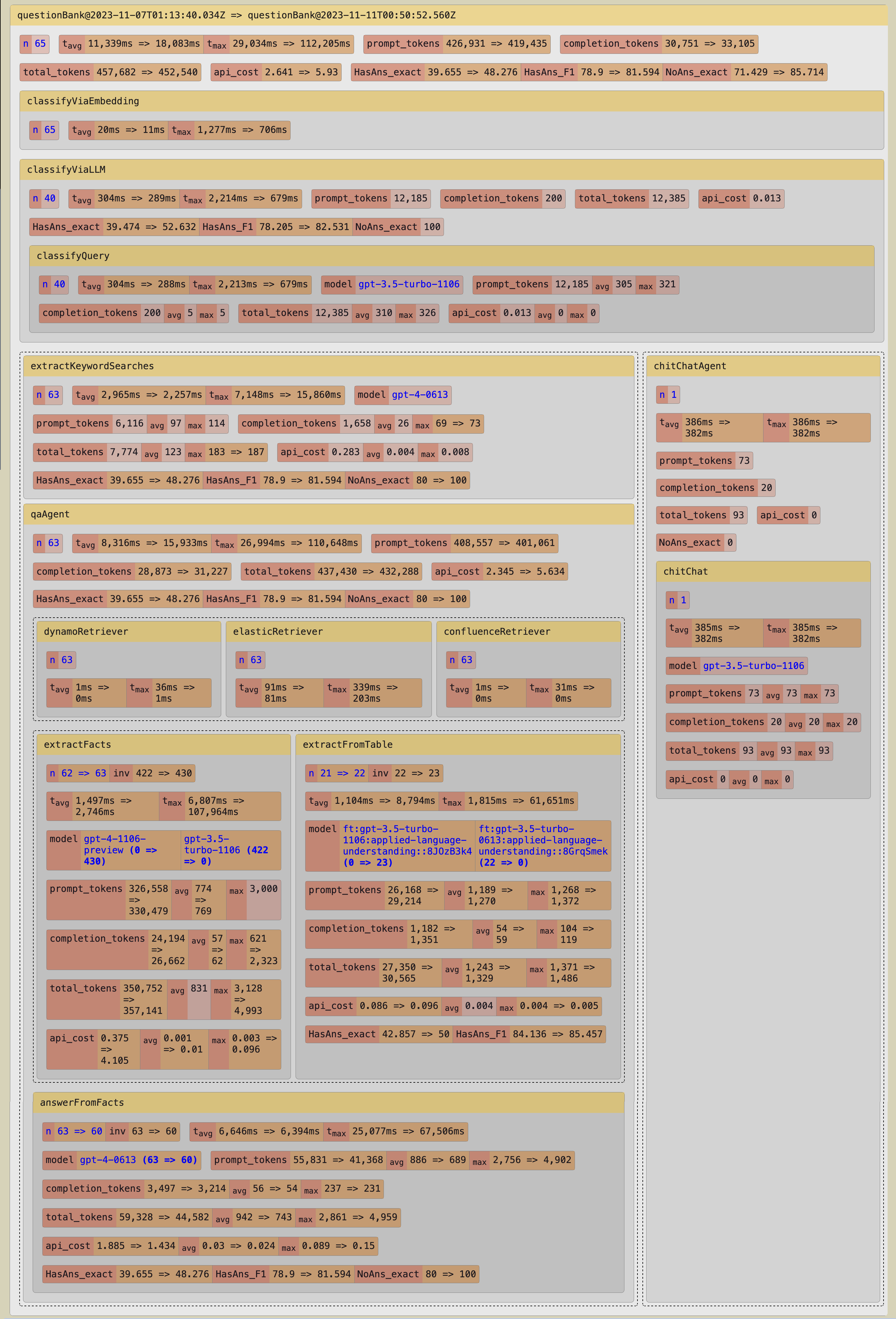 For our first evaluation run, we replaced gpt-4-1106-preview (GPT-4-Turbo) in the stages where we currently use gpt-4-0613 (GPT-4).