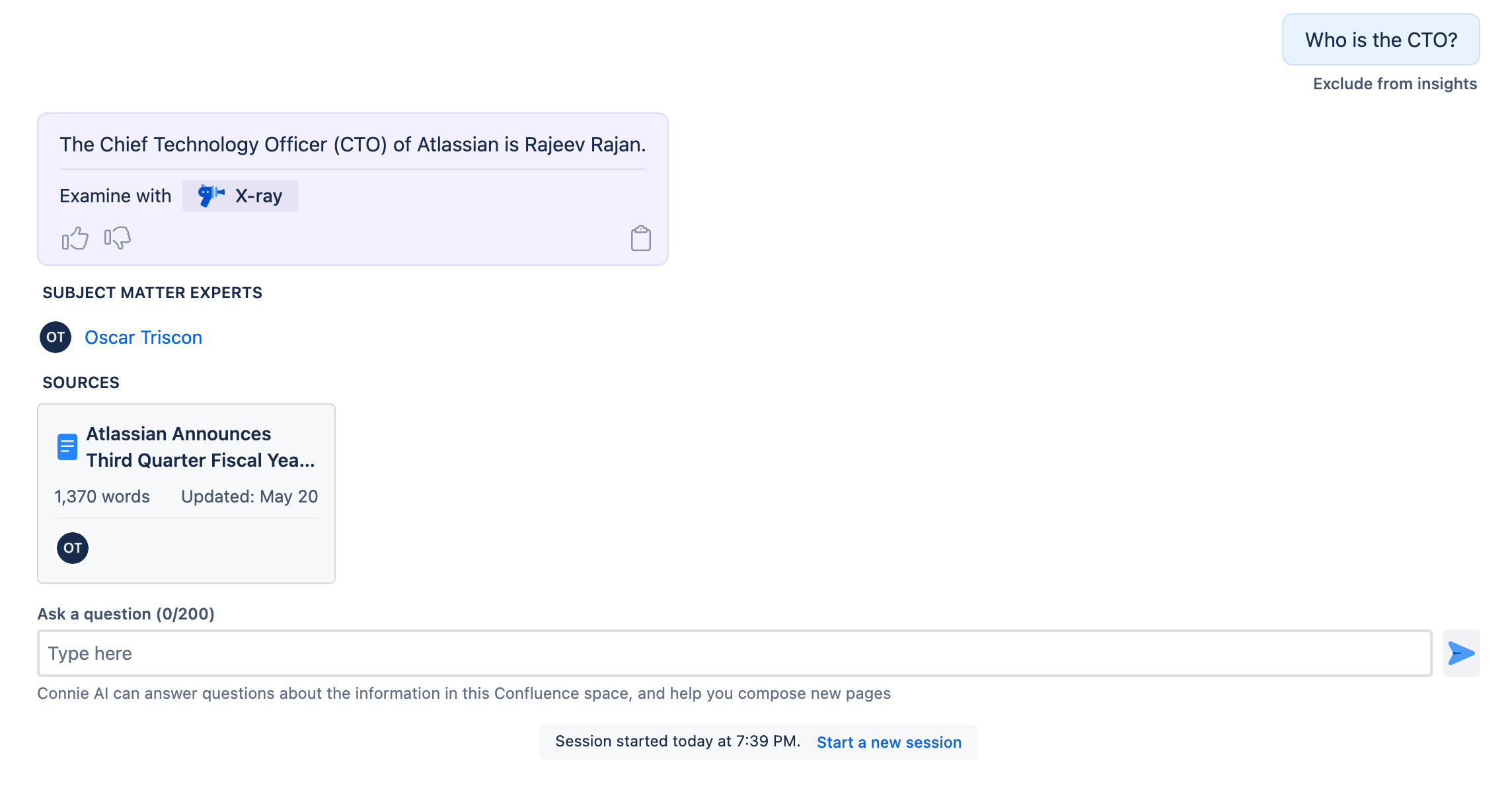 I am excited to announce the launch of a unique new feature for Connie AI we are calling "X-ray". Starting today, Connie not only offers correct and concise answers to any question that can be answered with the content of your Confluence site, but it also lets you see exactly how it arrived at it.