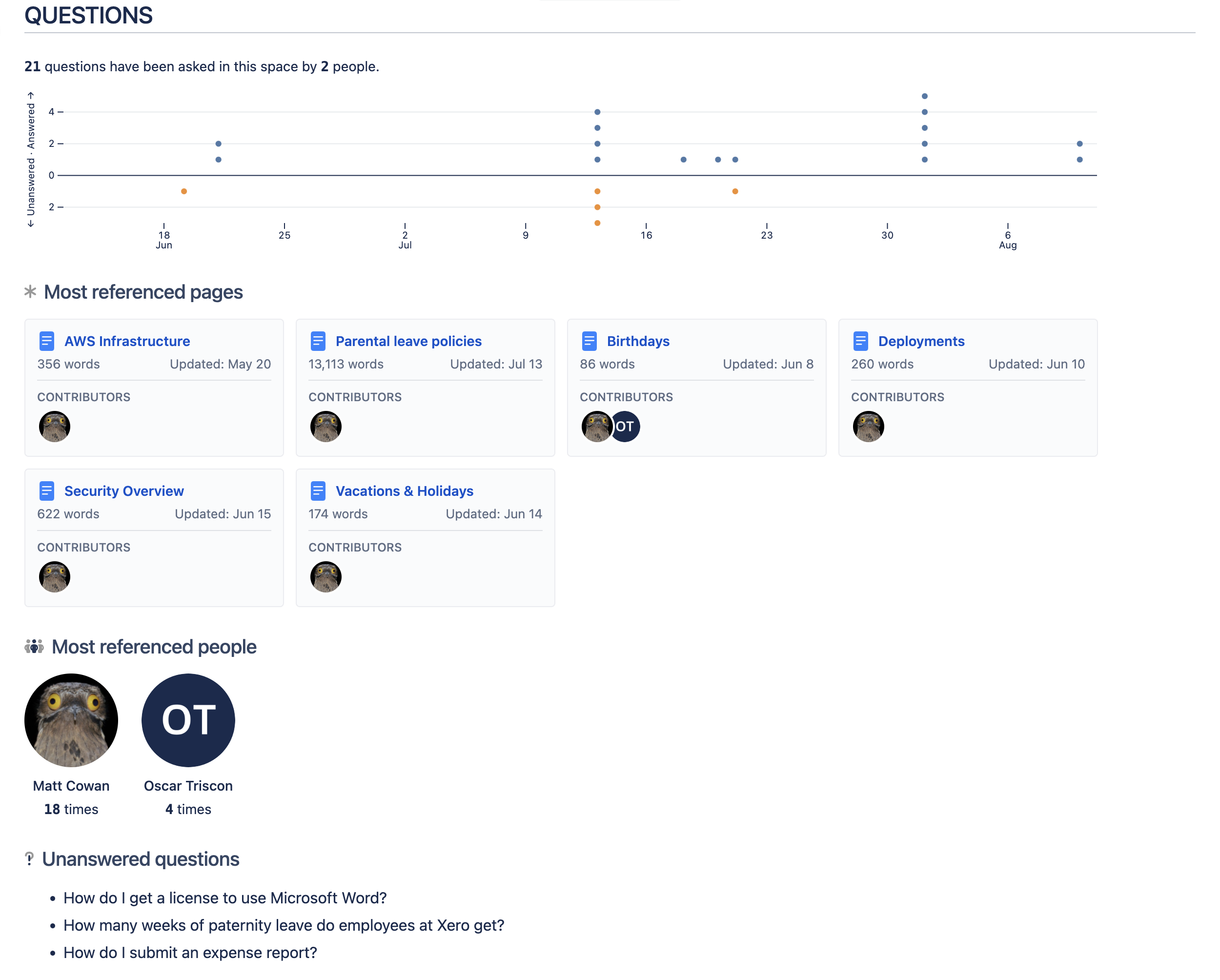 Our hope is that by providing these insights to you and your teammates it will provide a useful starting point to identify gaps in the content of the space that could be improved, making the space more useful.